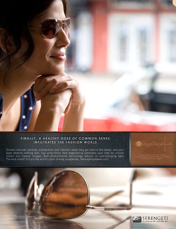 Functionality or fashion? Why not both? With eyewear engineered for unmatched optics for pilots and drivers, but with style and quality coveted by the beautiful people, Serengeti lives comfortably in both worlds.